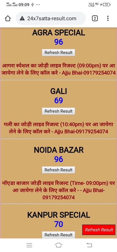 अगर आपको गुजरात मार्केट, राजस्थान गोल्ड, यूपी बाज़ार, फरीदाबाद, हरिद्वार बाज़ार, लखनऊ बाज़ार, उदयपुर, गाज़ियाबाद, शिमला बाज़ार, सुपर पंजाब, आगरा स्पेशल, गली, हरी ओम, जयपुर ,गाज़ियाबाद ,देसावर ,नोइडा बाज़ार ,राजस्थान गोल्ड का ओपन का लाइव रिजल्ट 1 घंटे पहले चाहिए तो कॉल करे-