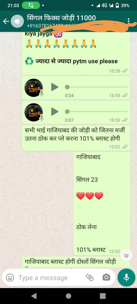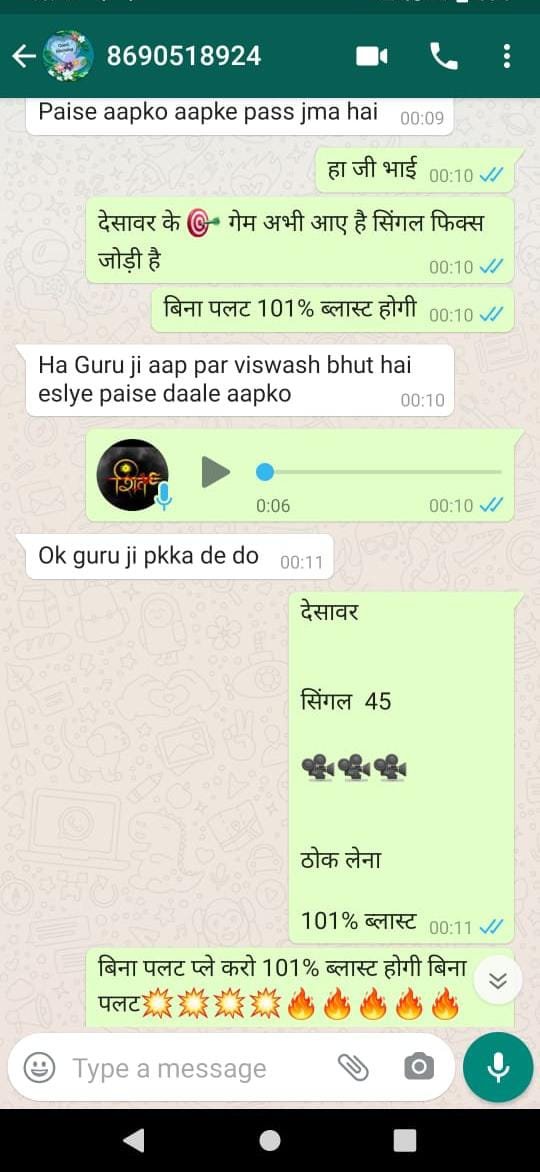 गली ओर दिशावर सिंगल जोड़ी लीक गेम पास की 100% गारंटी अब आपको कहीं और जाने की जरुरत नहीं है क्योंकि मैं आपके लिए लेकर मैं आया हूँं सिंगल गेम जो होगी सट्टा कंपनी से लीक जिसे कहते फिक्स गेम CALL करें Ajju Bhai-09179254074