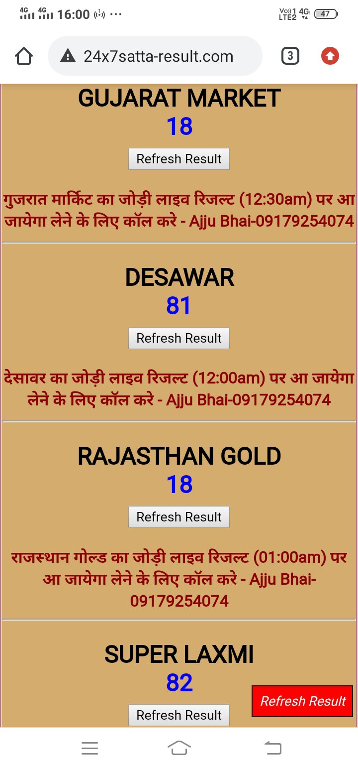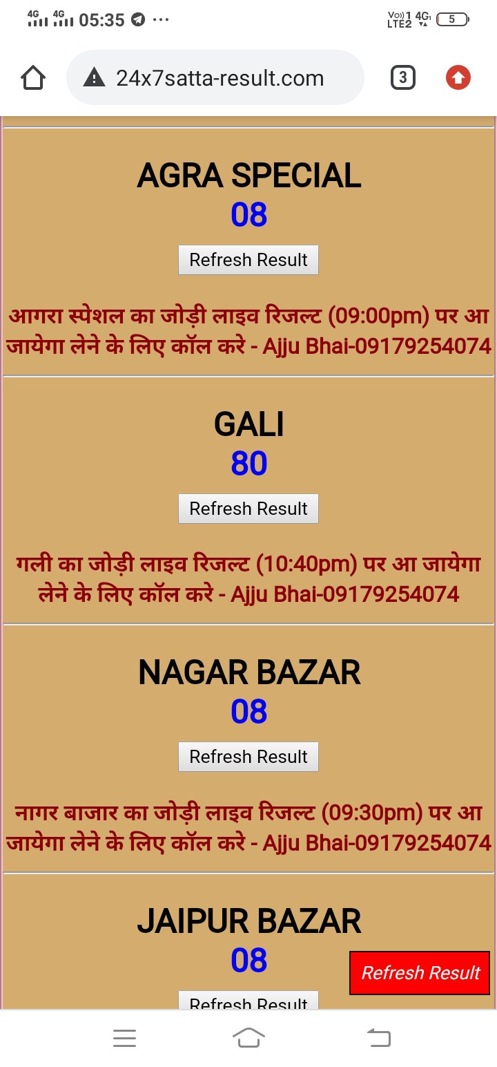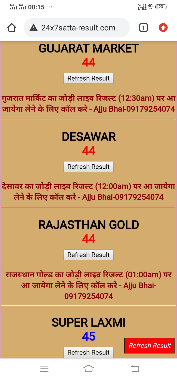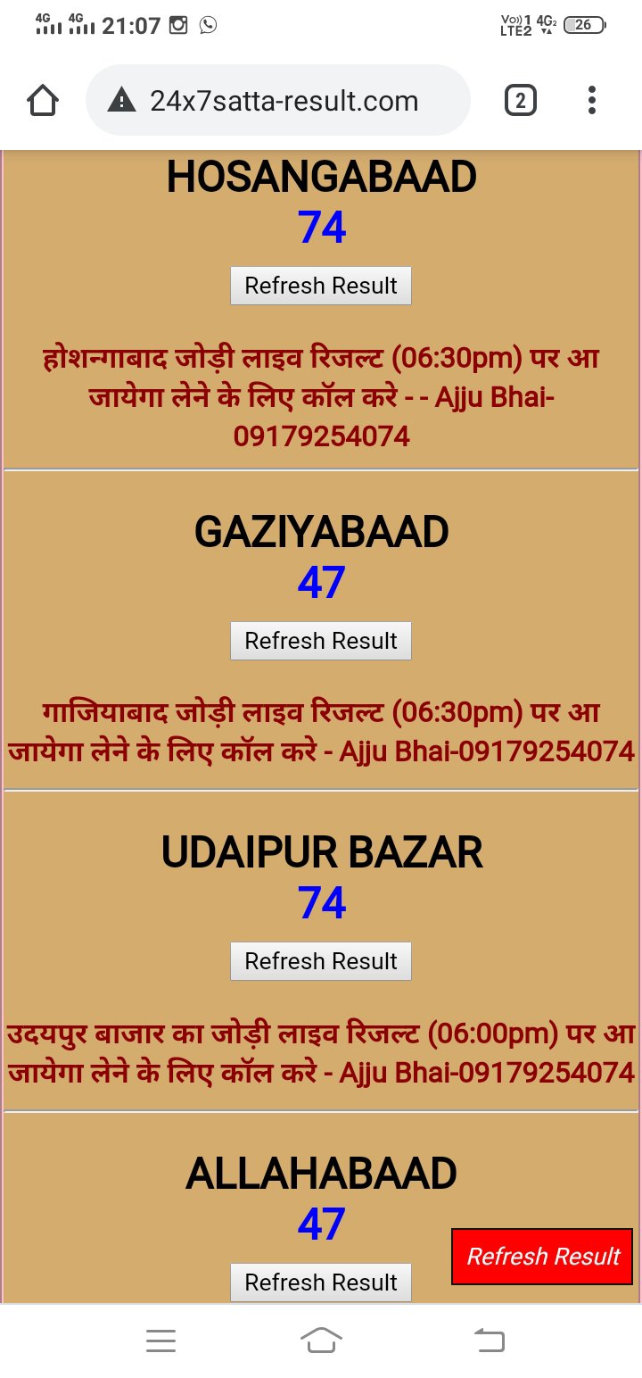 अगर आपको गुजरात मार्केट, राजस्थान गोल्ड, यूपी बाज़ार, फरीदाबाद, हरिद्वार बाज़ार, लखनऊ बाज़ार, उदयपुर, गाज़ियाबाद, शिमला बाज़ार, सुपर पंजाब, आगरा स्पेशल, गली, हरी ओम, जयपुर ,गाज़ियाबाद ,देसावर ,नोइडा बाज़ार ,राजस्थान गोल्ड का ओपन का लाइव रिजल्ट 1 घंटे पहले चाहिए तो कॉल करे-ajju Bhai-09179254074