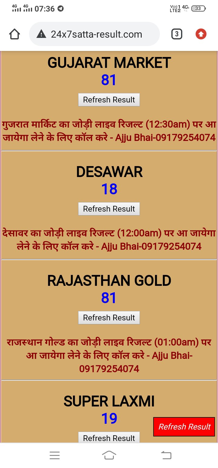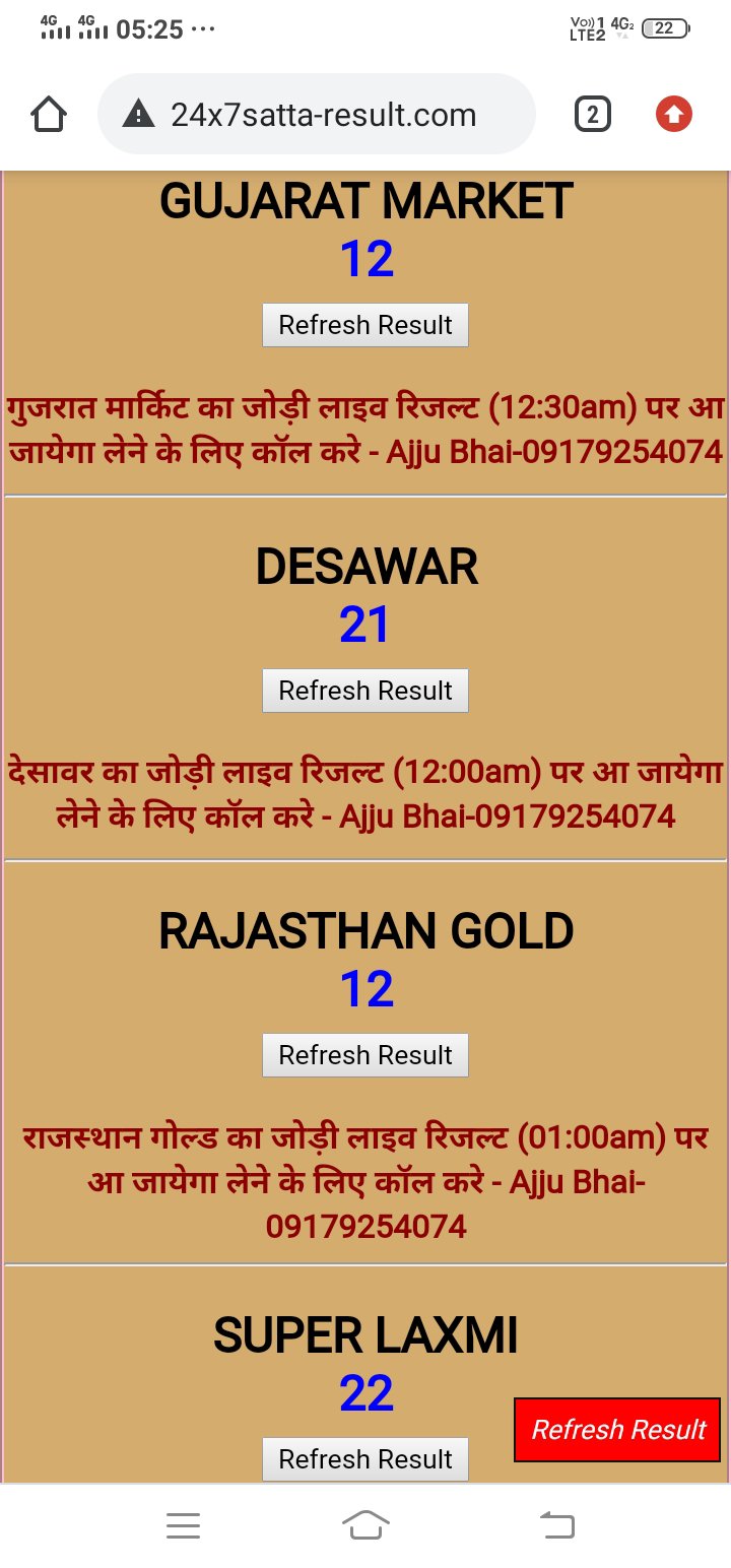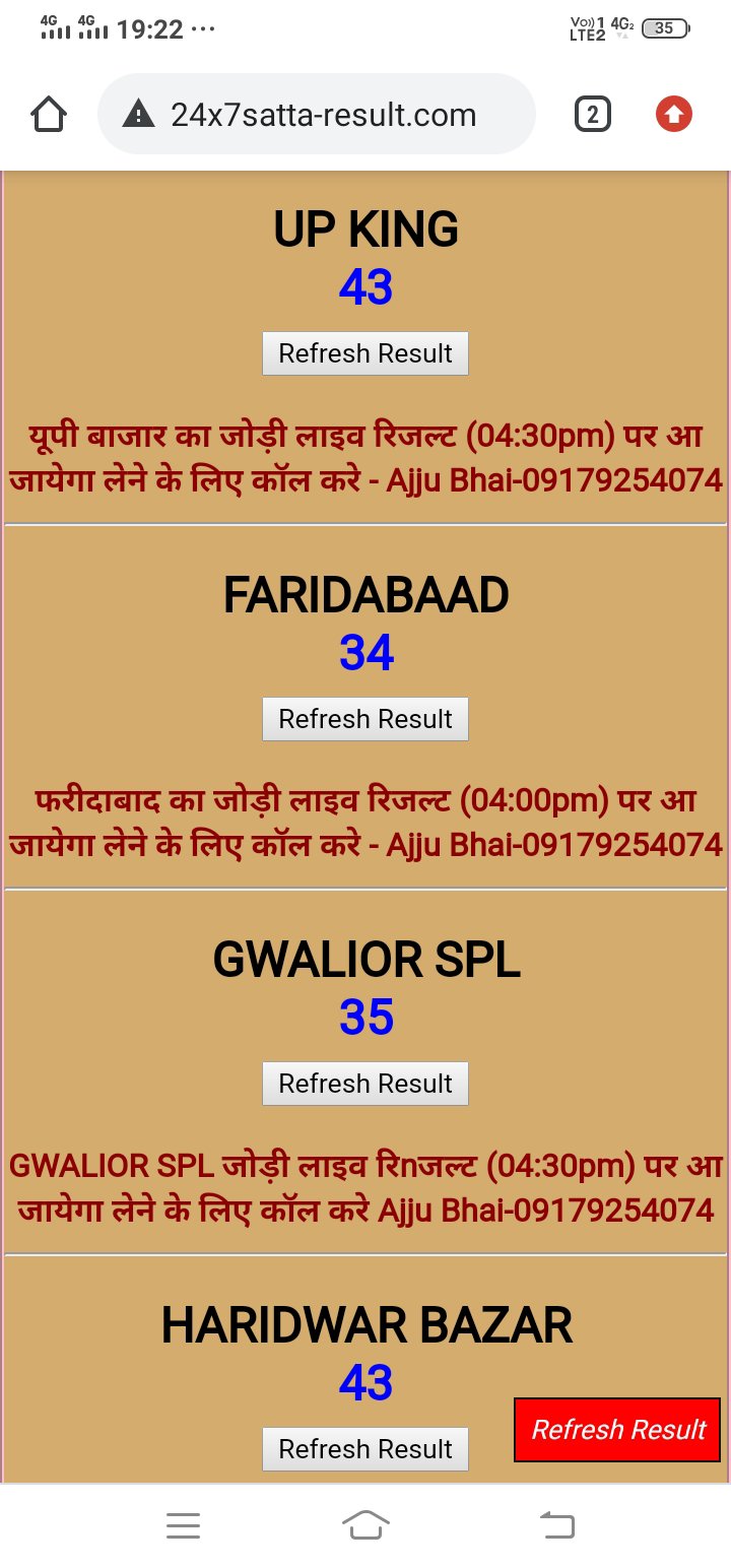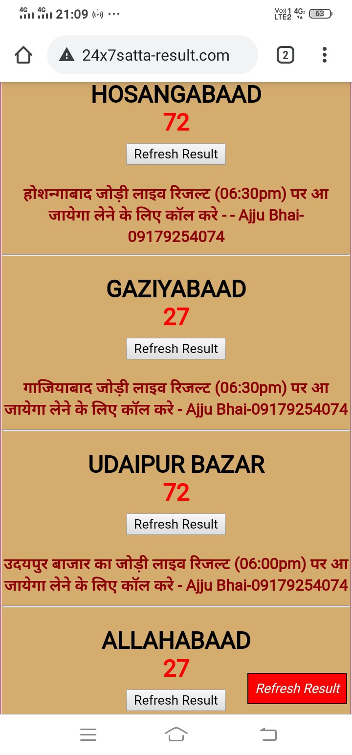 अगर आपको गुजरात मार्केट, राजस्थान गोल्ड, यूपी बाज़ार, फरीदाबाद, हरिद्वार बाज़ार, लखनऊ बाज़ार, उदयपुर, गाज़ियाबाद, शिमला बाज़ार, सुपर पंजाब, आगरा स्पेशल, गली, हरी ओम, जयपुर ,गाज़ियाबाद ,देसावर ,नोइडा बाज़ार ,राजस्थान गोल्ड का ओपन का लाइव रिजल्ट 1 घंटे पहले चाहिए तो कॉल करे-ajju Bhai-09179254074