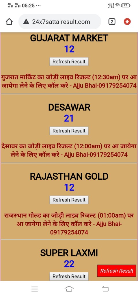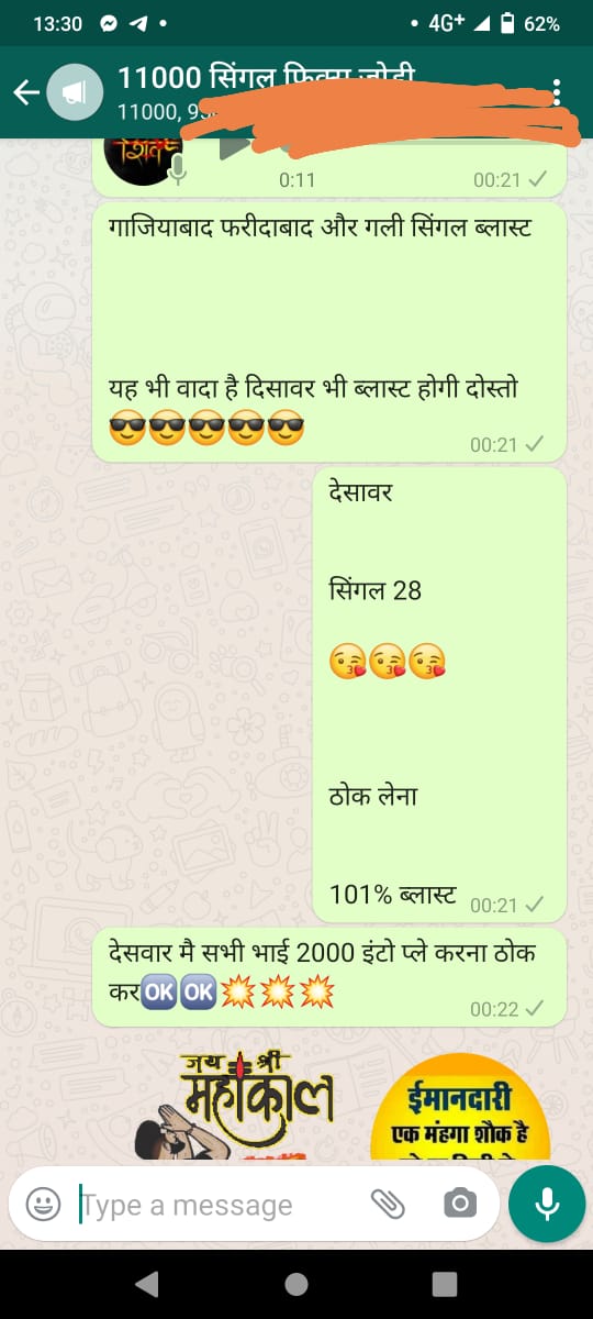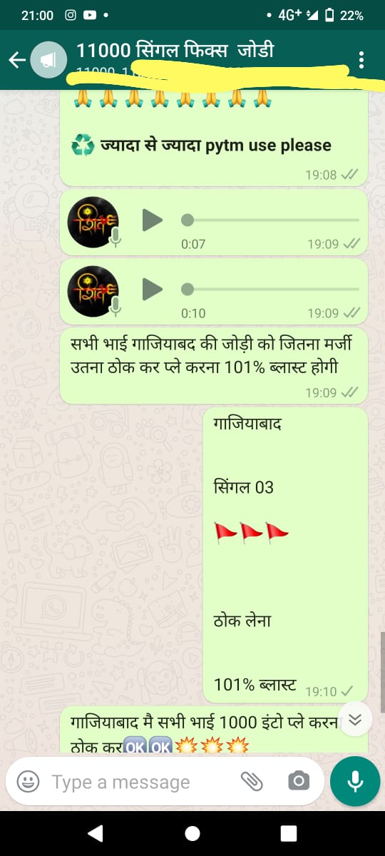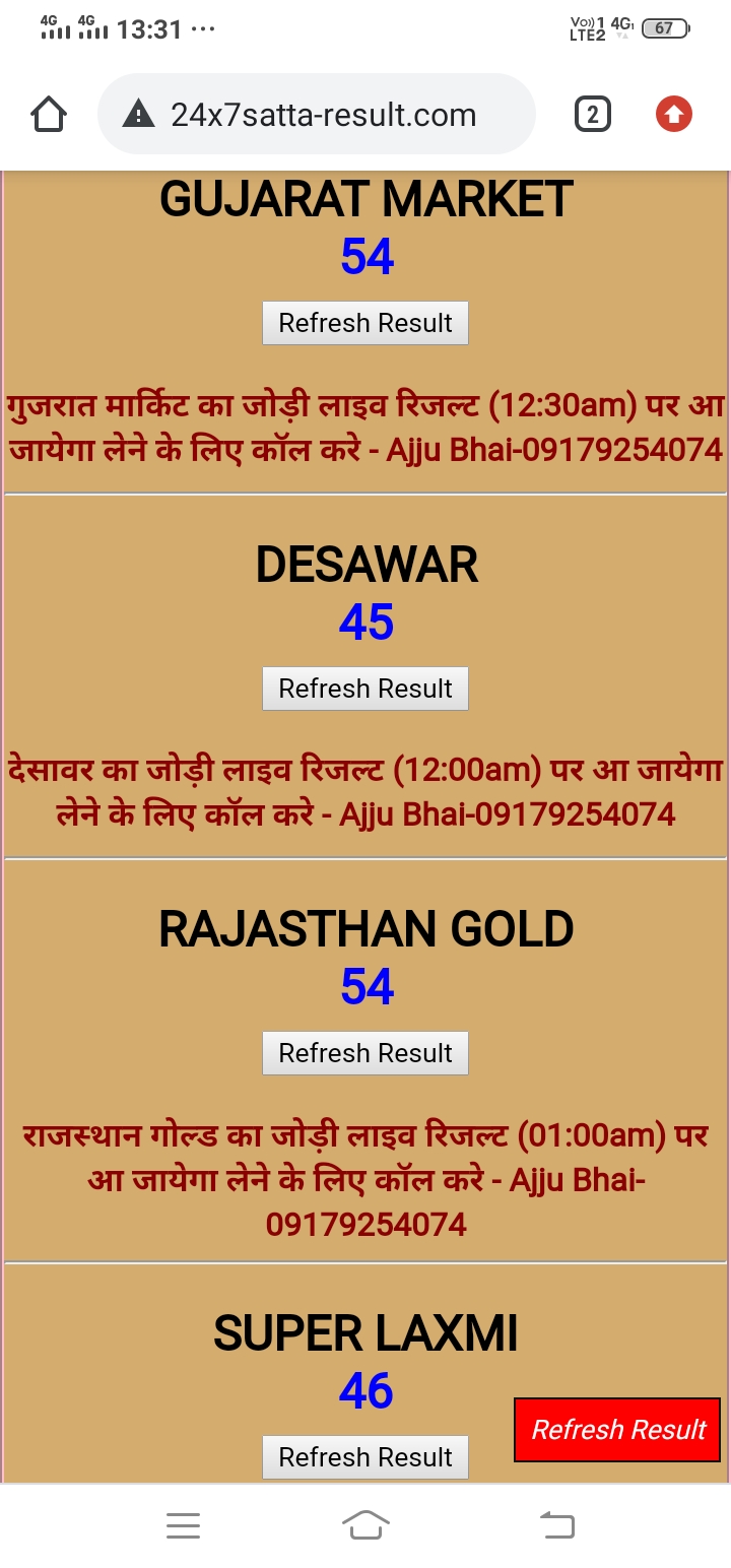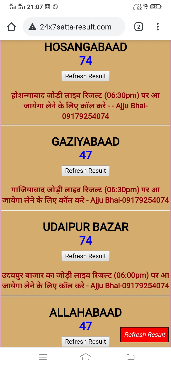 अगर आपको गुजरात मार्केट, राजस्थान गोल्ड, यूपी बाज़ार, फरीदाबाद, हरिद्वार बाज़ार, लखनऊ बाज़ार, उदयपुर, गाज़ियाबाद, शिमला बाज़ार, सुपर पंजाब, आगरा स्पेशल, गली, हरी ओम, जयपुर ,गाज़ियाबाद ,देसावर ,नोइडा बाज़ार ,राजस्थान गोल्ड का ओपन का लाइव रिजल्ट 1 घंटे पहले चाहिए तो कॉल करे-