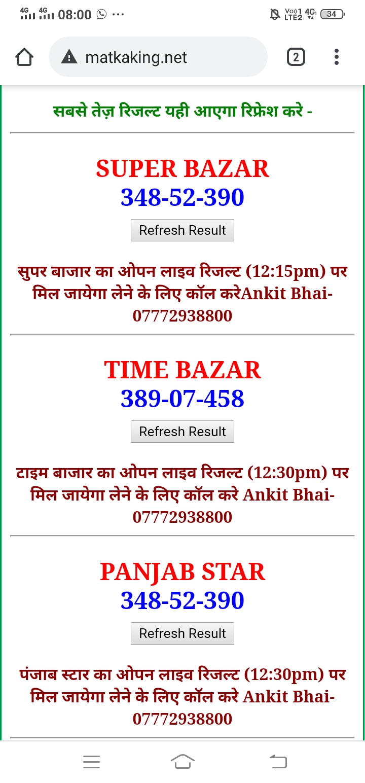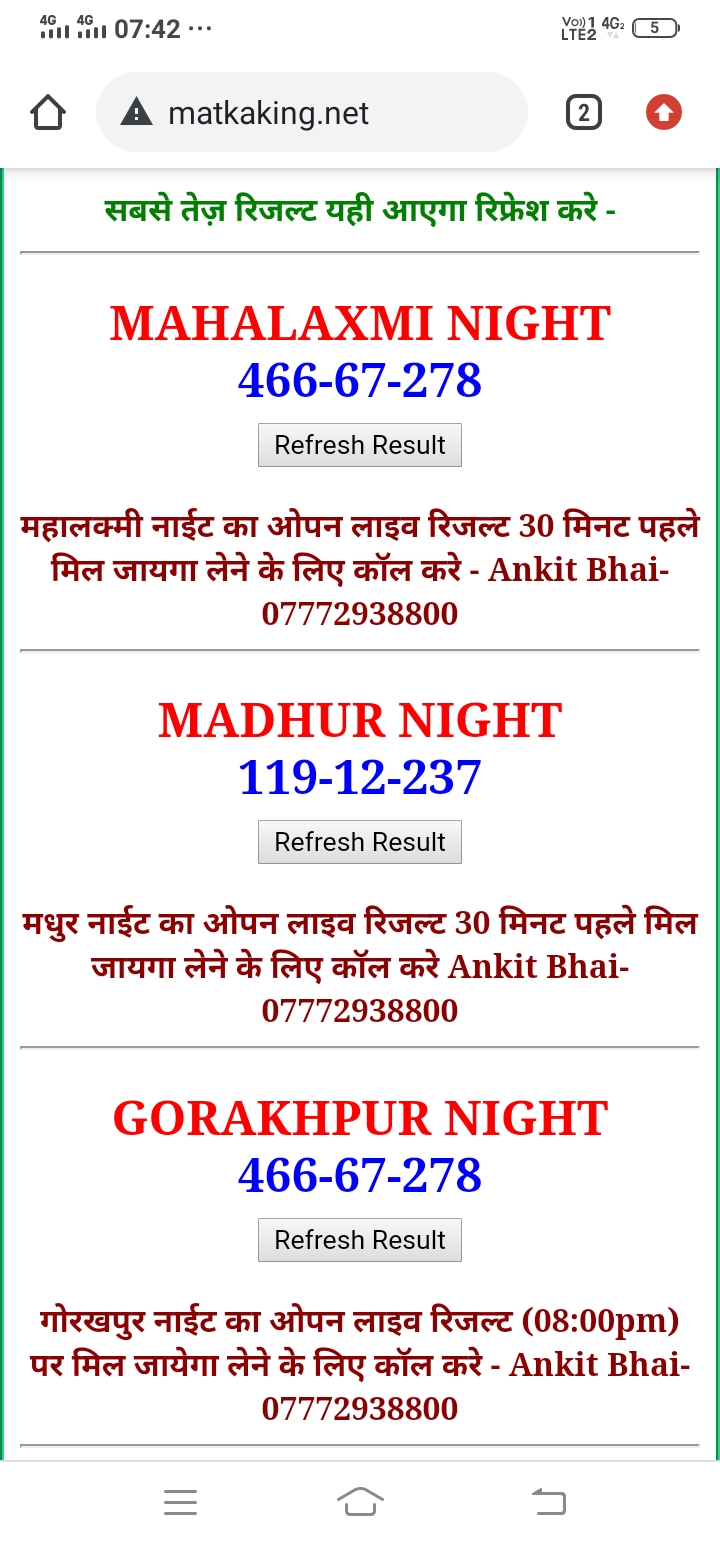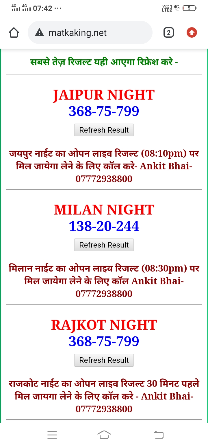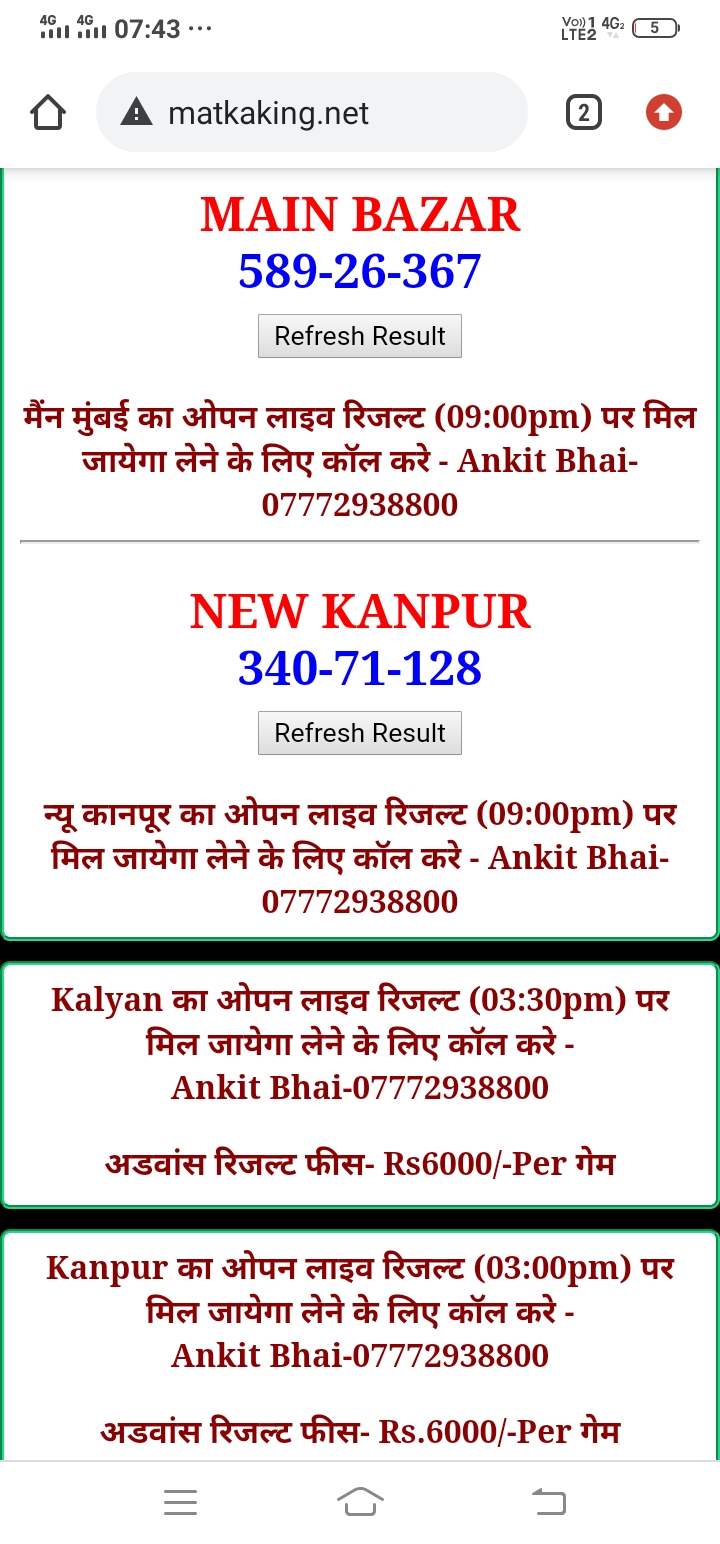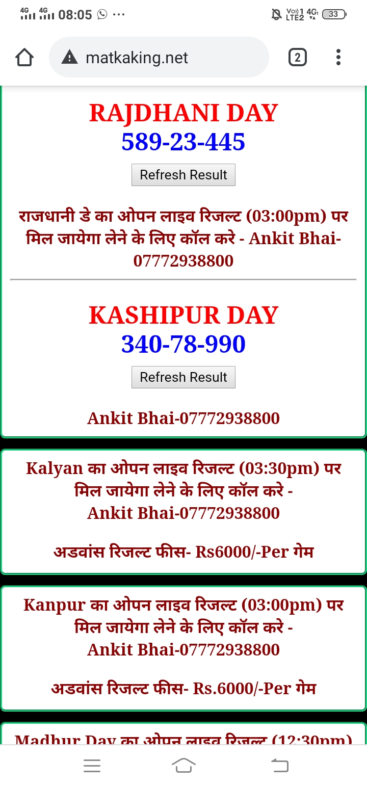 दोस्तों अगर आपको कल्याण, टाइम बाजार, मधुर डे ,मिलन डे, राजधानी डे, महालक्ष्मी डे, गोरखपुर डे ,जयपुर डे , कानपुर डे , गुजरात डे , राजकोट डे, काशीपुर डे , ओपन लाइव रिजल्ट 30 मिनट पहले लेने के लिए कॉल करे -अंकित भाई -7772938800