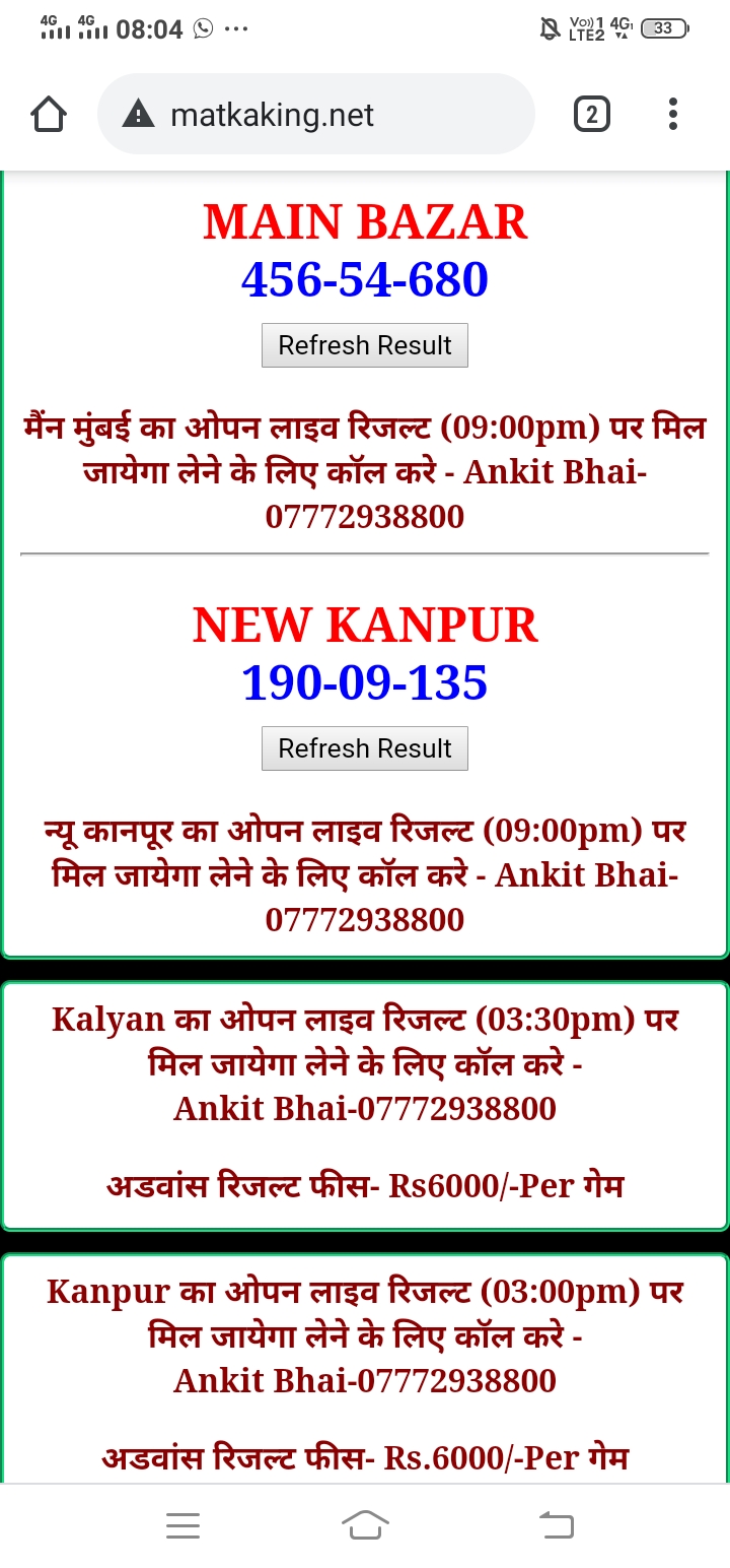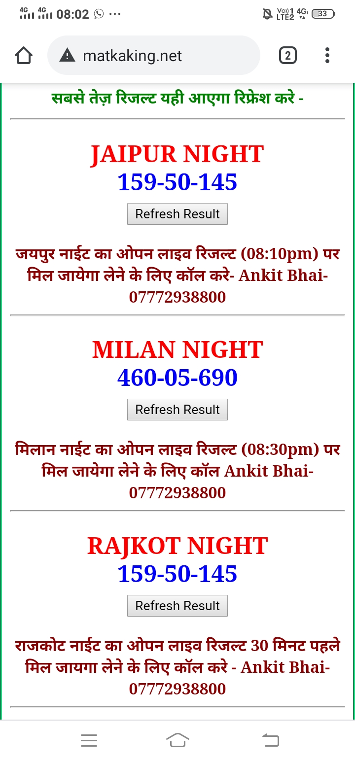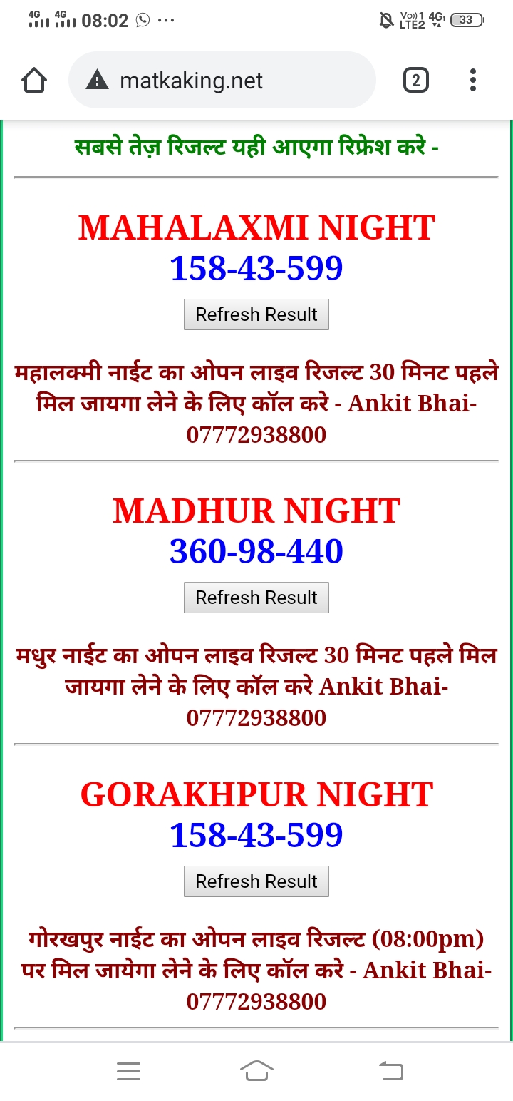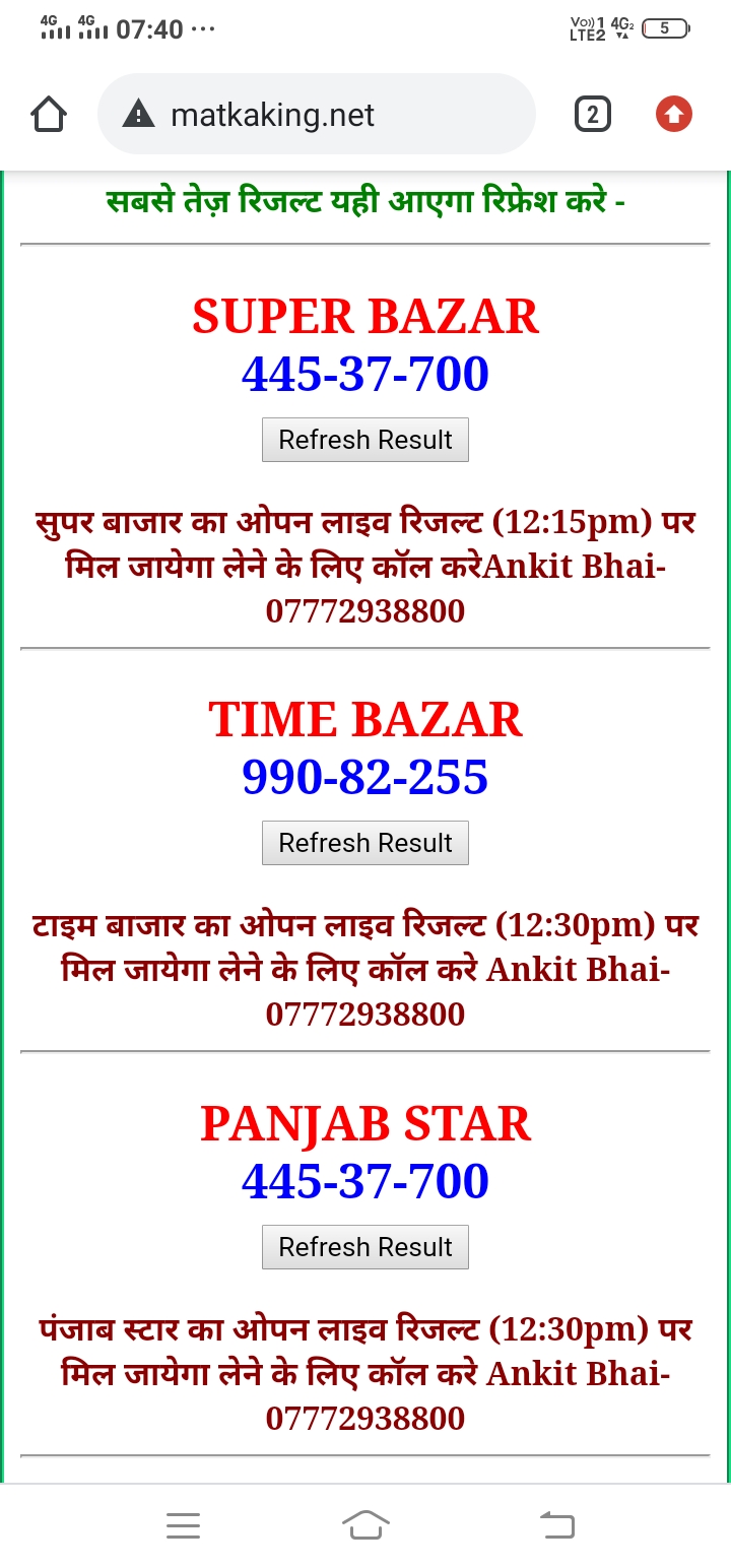 दोस्तों अगर आपको कल्याण, टाइम बाजार, मधुर डे ,मिलन डे, राजधानी डे, महालक्ष्मी डे, गोरखपुर डे ,जयपुर डे , कानपुर डे , गुजरात डे , राजकोट डे, काशीपुर डे , ओपन लाइव रिजल्ट 30 मिनट पहले लेने के लिए कॉल करे -अंकित भाई -7772938800