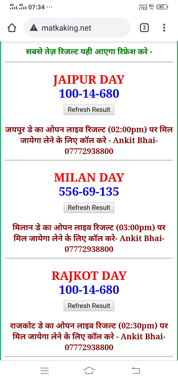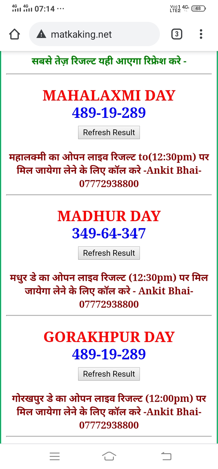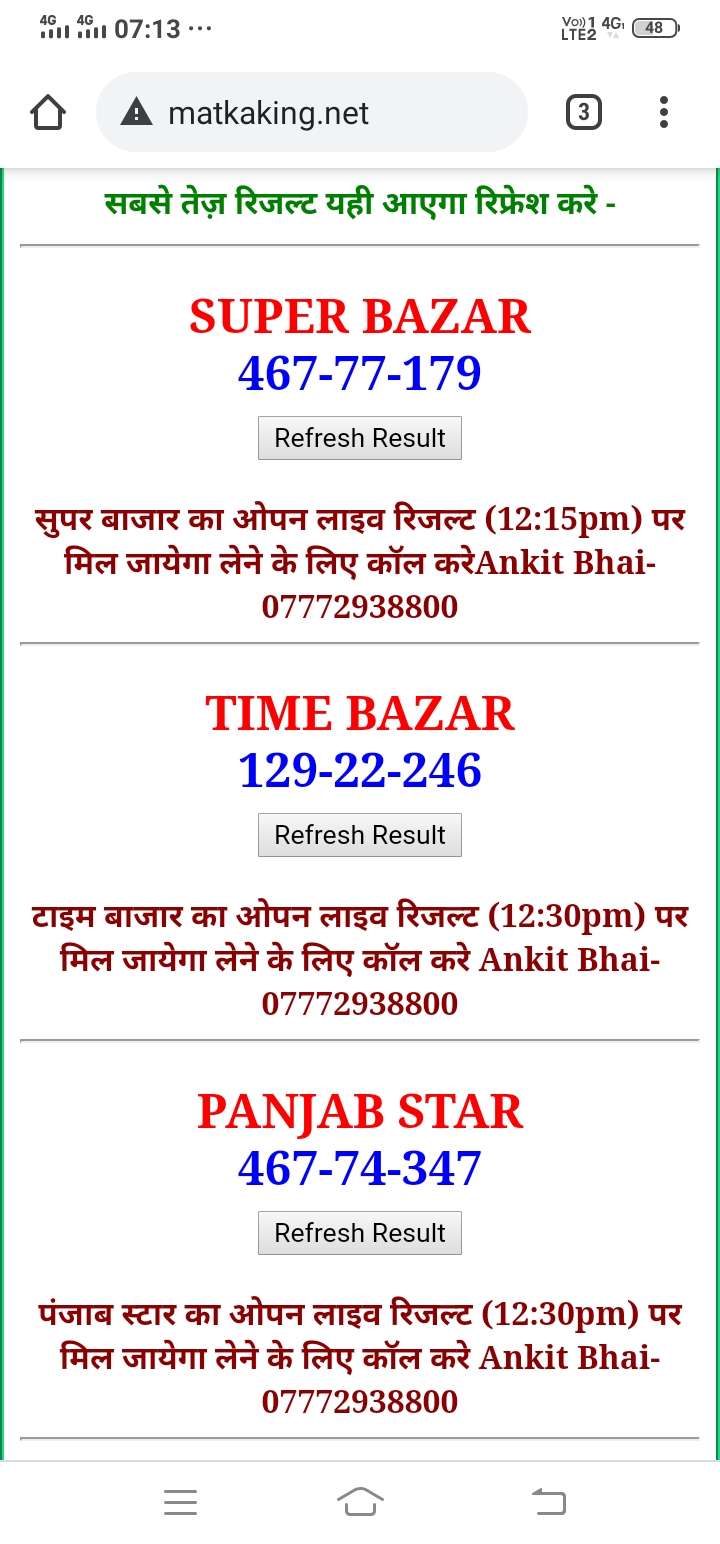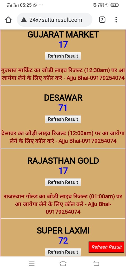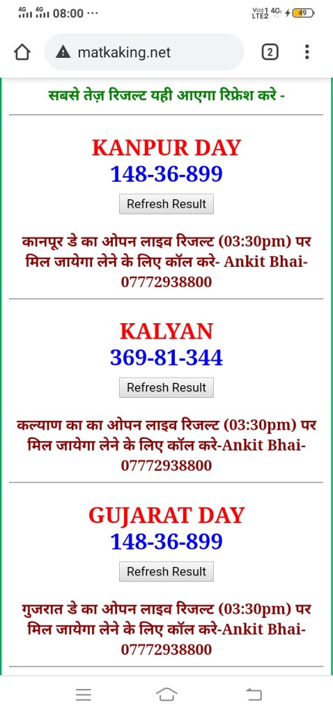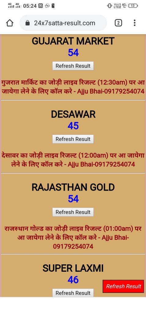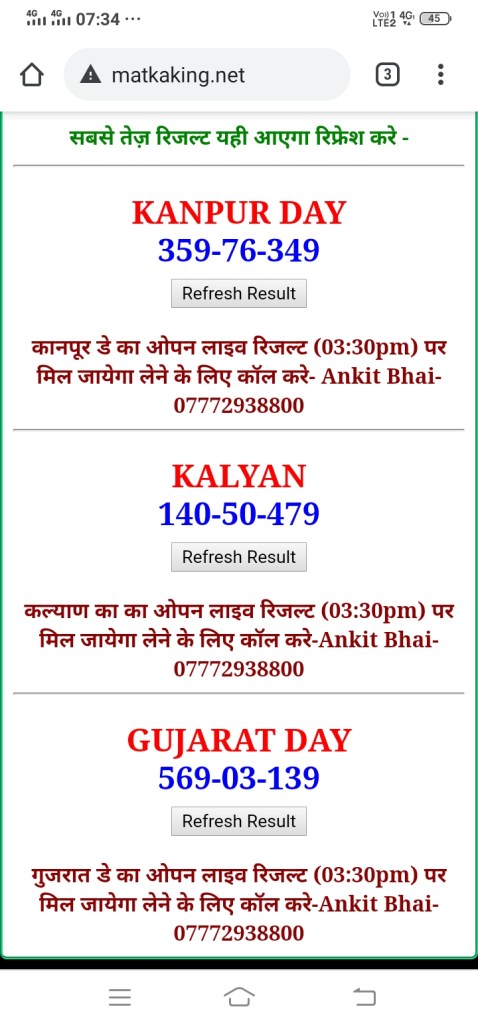 अगर आपको गुजरात मार्केट, देसावर, राजस्थान गोल्ड, दुबई किंग, आगरा स्पेशल, गली, उदयपुर बाजार, ग़ज़िआबाद, जम्मू सिटी, यूपी किंग, फरीदाबाद, और अलीगढ बाजार का रिजल्ट एक घंटा पहले चाहिए तो कॉल करें -GURU JI – 07389034286