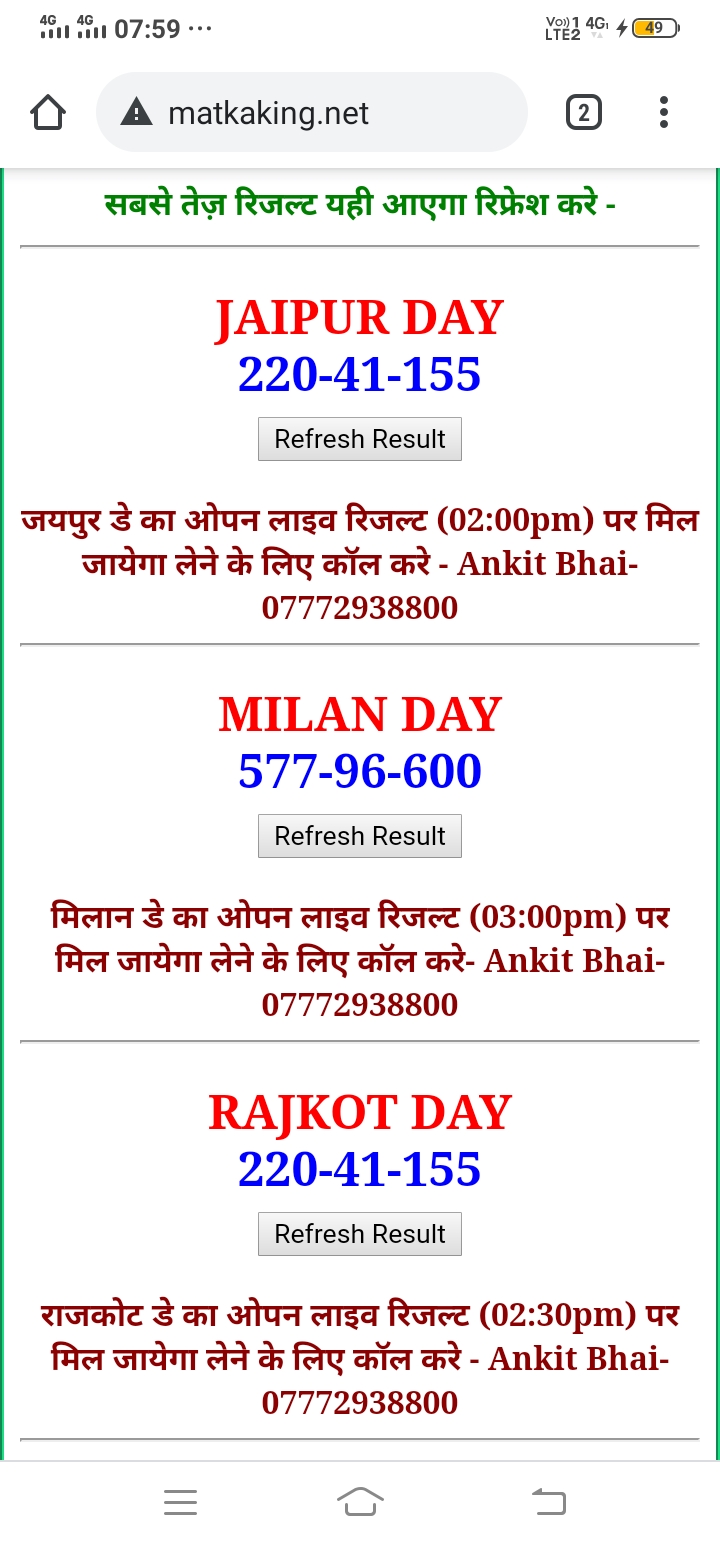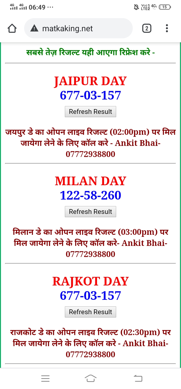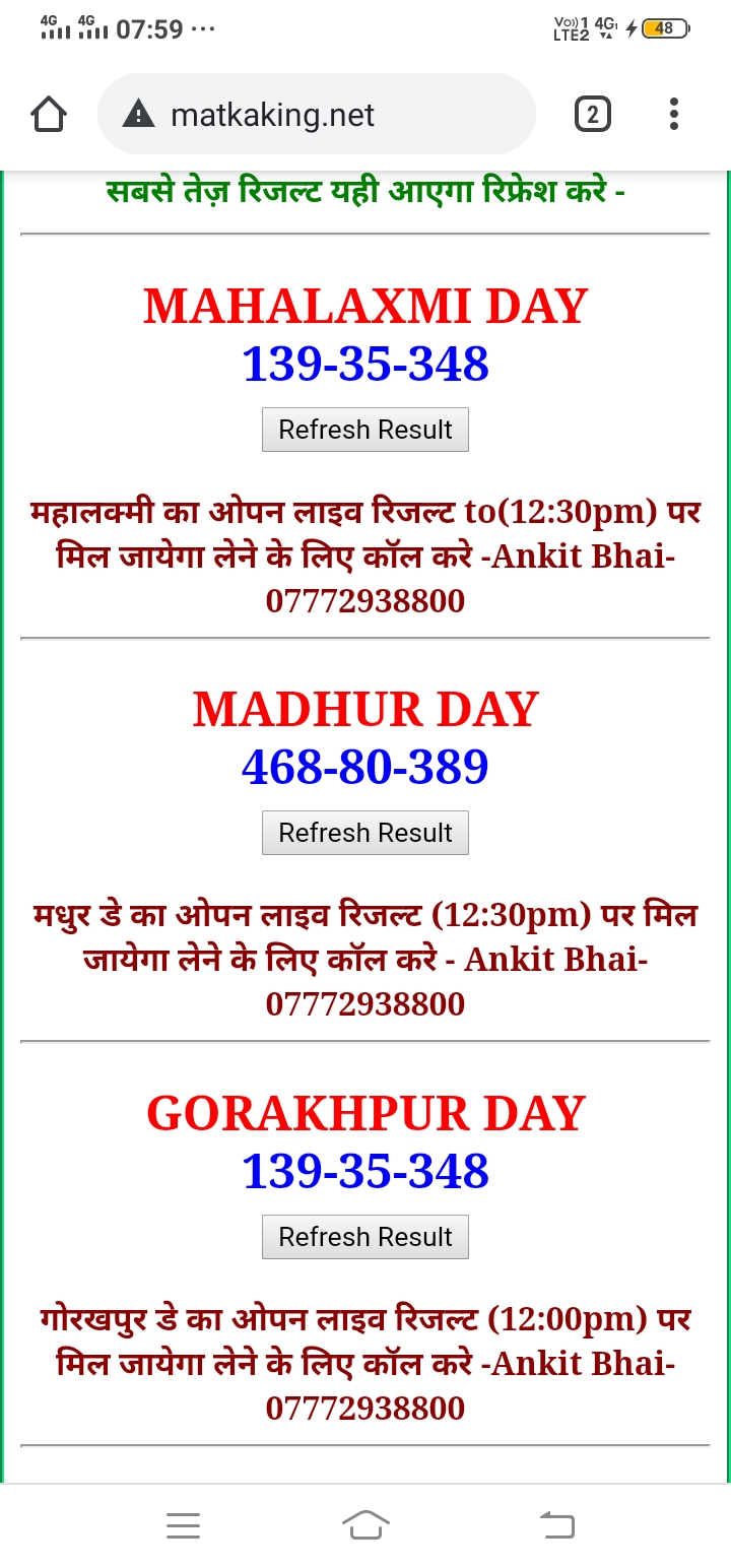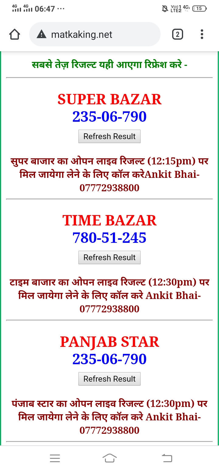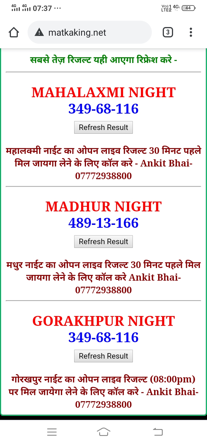 अगर आपको गुजरात मार्केट, देसावर, राजस्थान गोल्ड, दुबई किंग, आगरा स्पेशल, गली, उदयपुर बाजार, ग़ज़िआबाद, जम्मू सिटी, यूपी किंग, फरीदाबाद, और अलीगढ बाजार का रिजल्ट एक घंटा पहले चाहिए तो कॉल करें -GURU JI – 07389034286