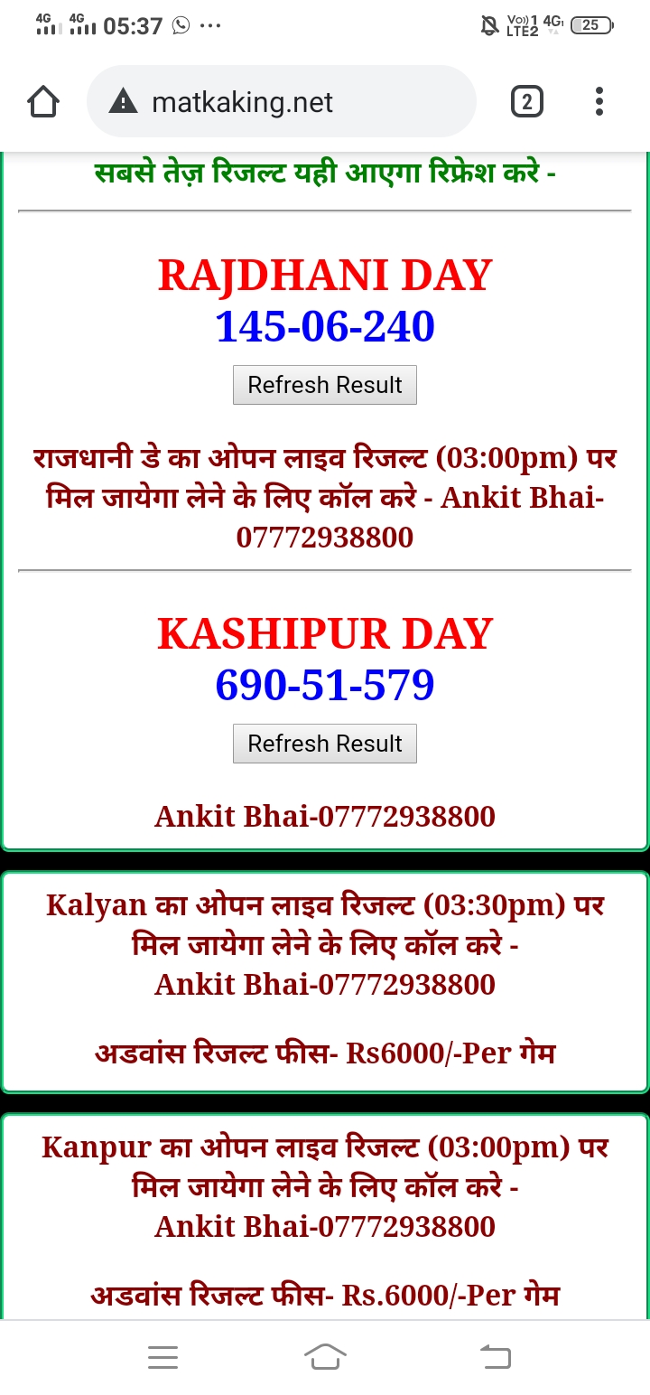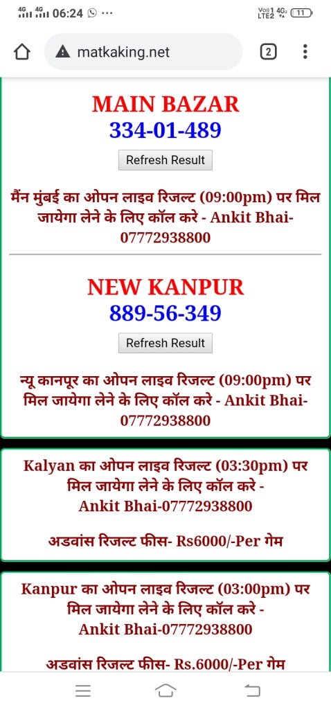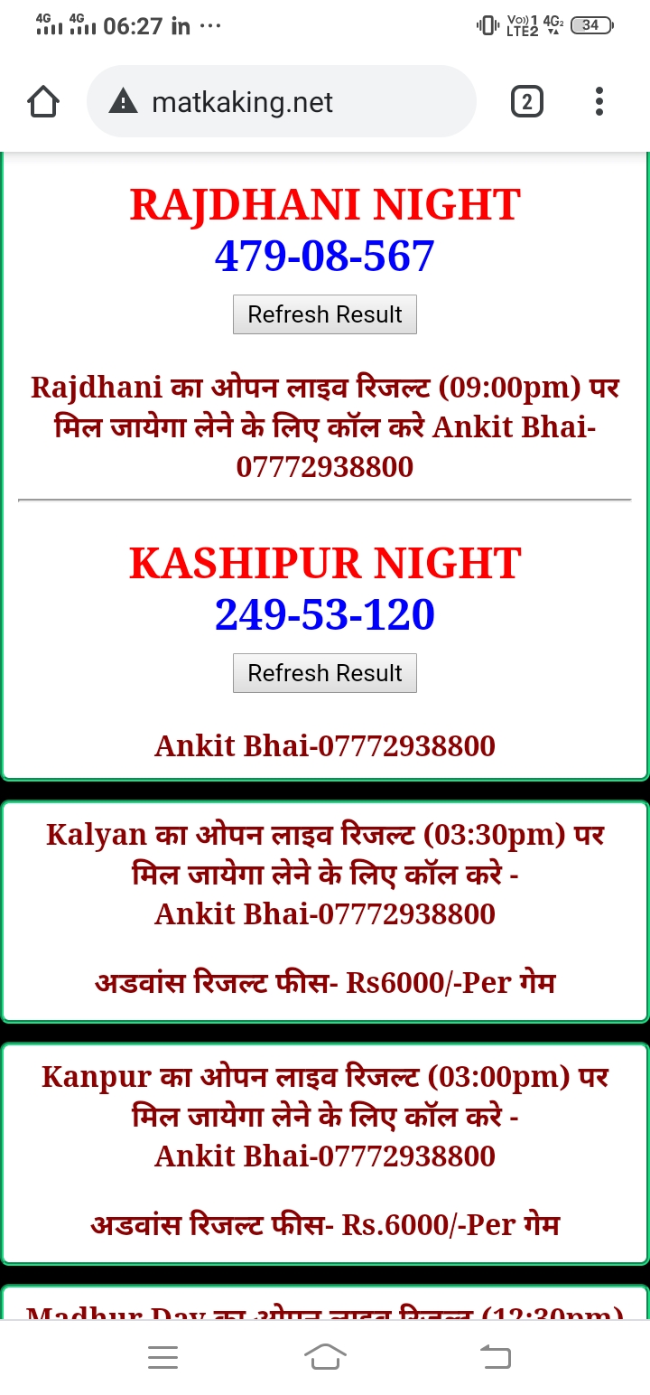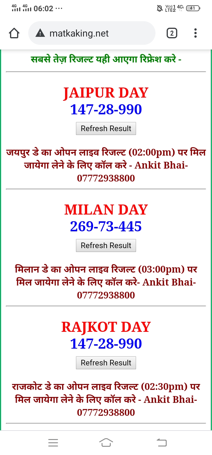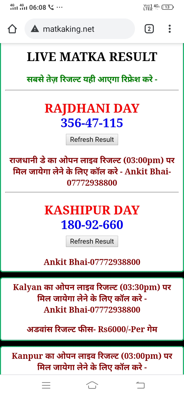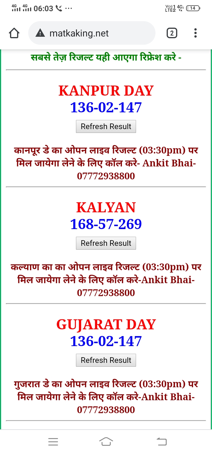 दोस्तों अगर आपको कल्याण, टाइम बाजार, मधुर डे ,मिलन डे, राजधानी डे, महालक्ष्मी डे, गोरखपुर डे ,जयपुर डे , कानपुर डे , गुजरात डे , राजकोट डे, मेन बाजार कल्याण नाइट काशीपुर डे , ओपन लाइव रिजल्ट 30 मिनट पहले लेने के लिए कॉल करे -अंकित भाई -7772938800