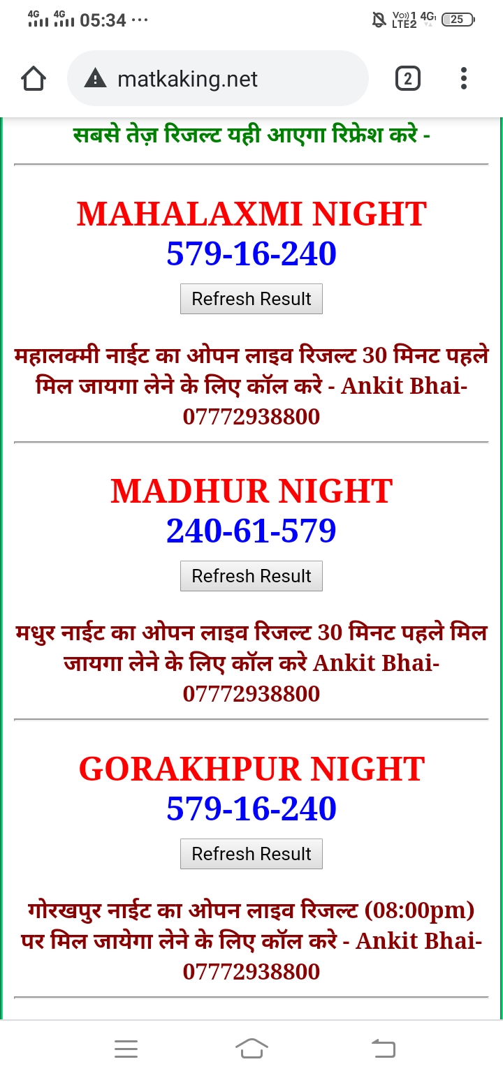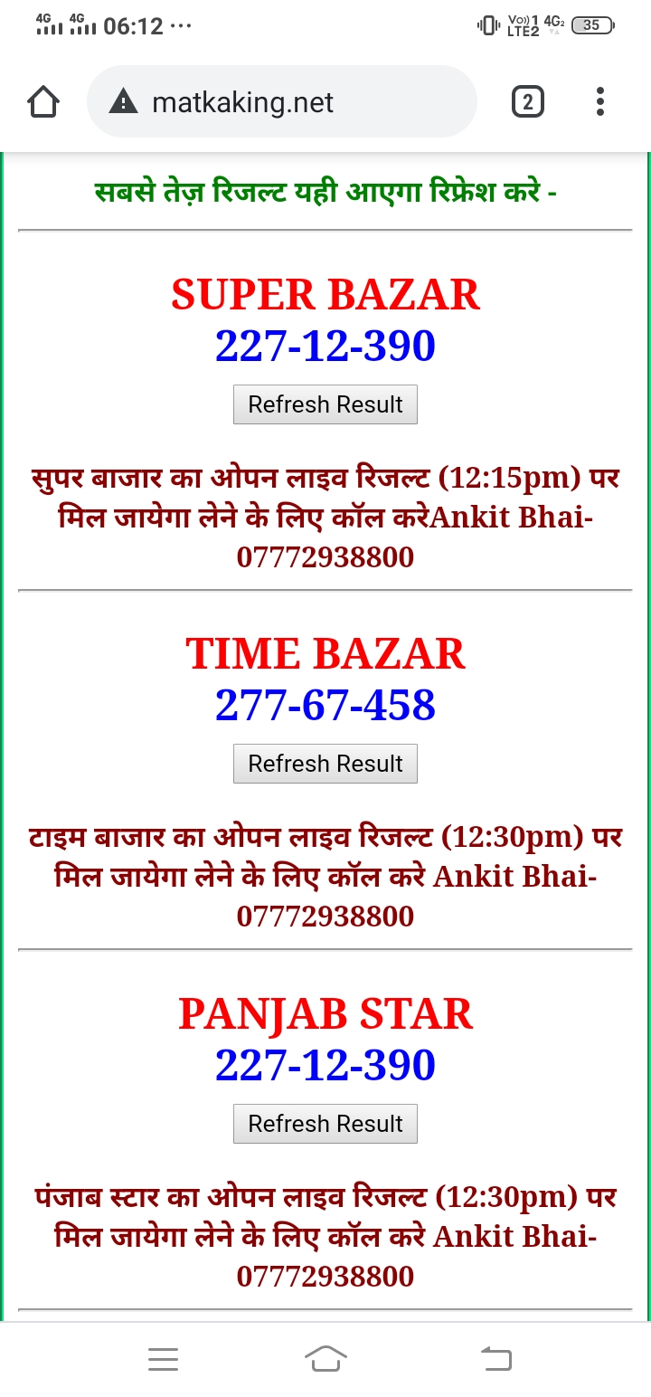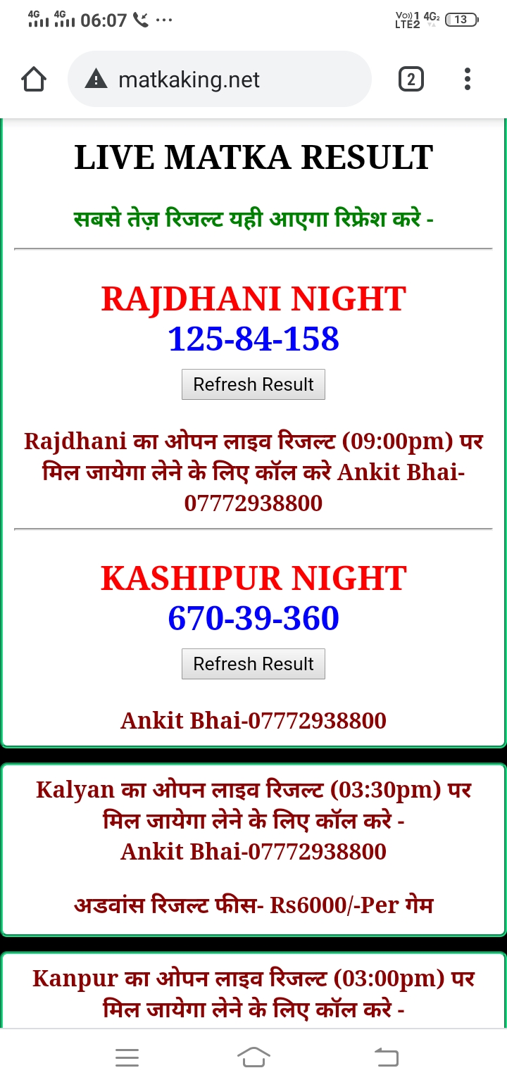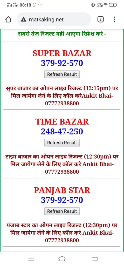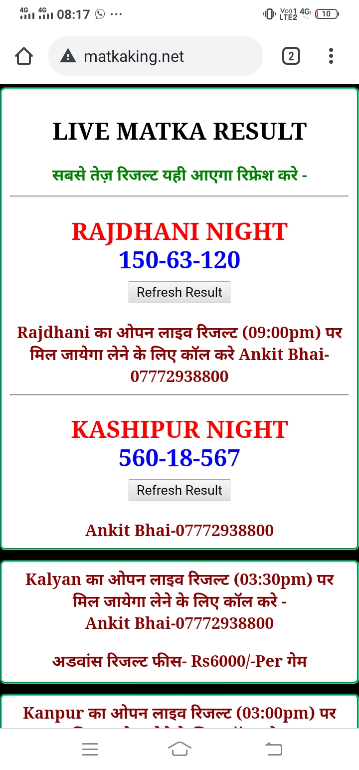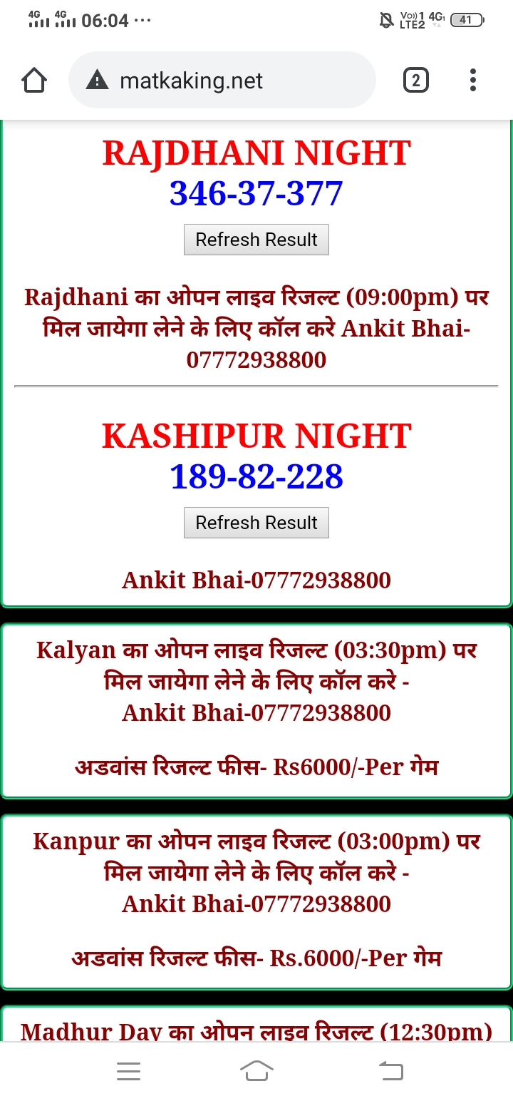 दोस्तों अगर आपको कल्याण, टाइम बाजार, मधुर डे ,मिलन डे, राजधानी डे, महालक्ष्मी डे, गोरखपुर डे ,जयपुर डे , कानपुर डे , गुजरात डे , राजकोट डे, मेन बाजार कल्याण नाइट काशीपुर डे , ओपन लाइव रिजल्ट 30 मिनट पहले लेने के लिए कॉल करे -अंकित भाई -7772938800