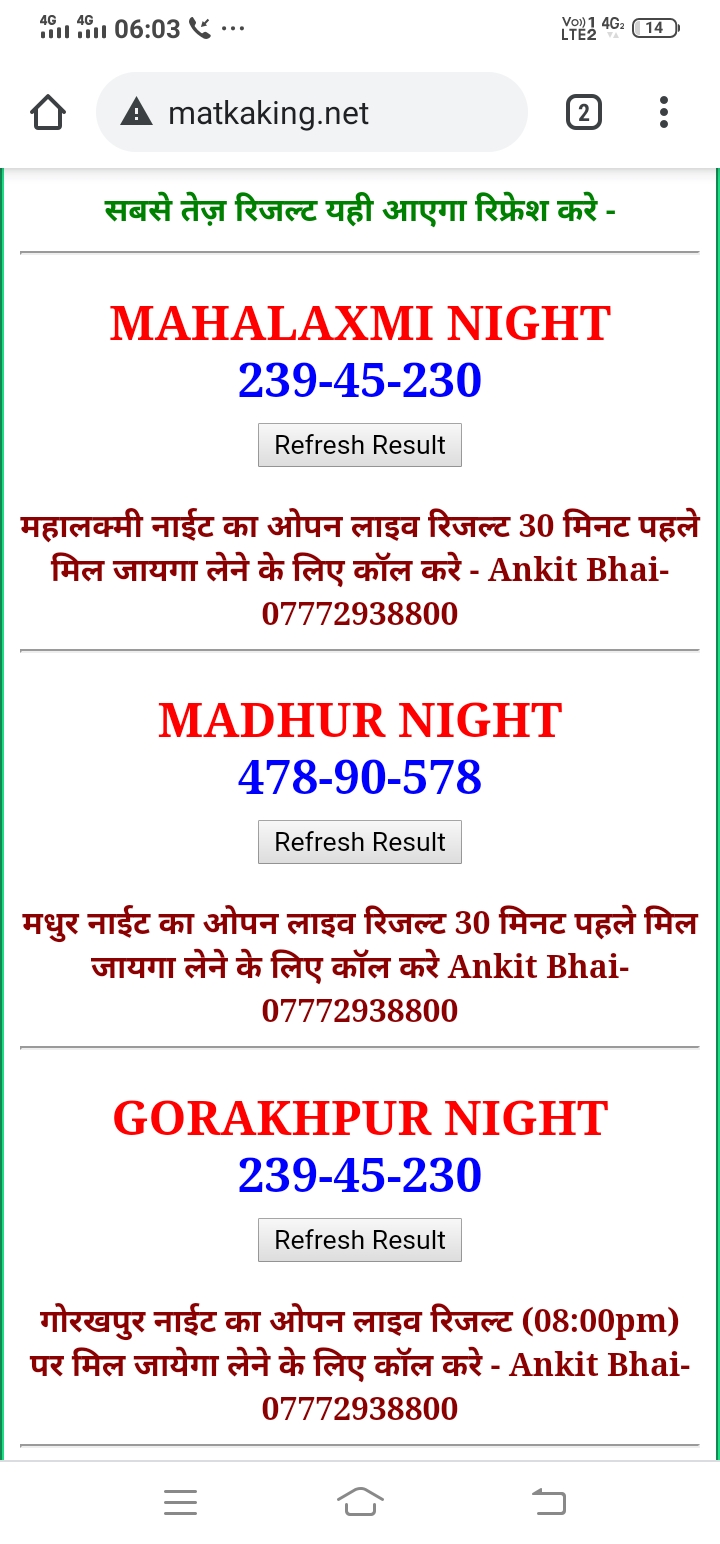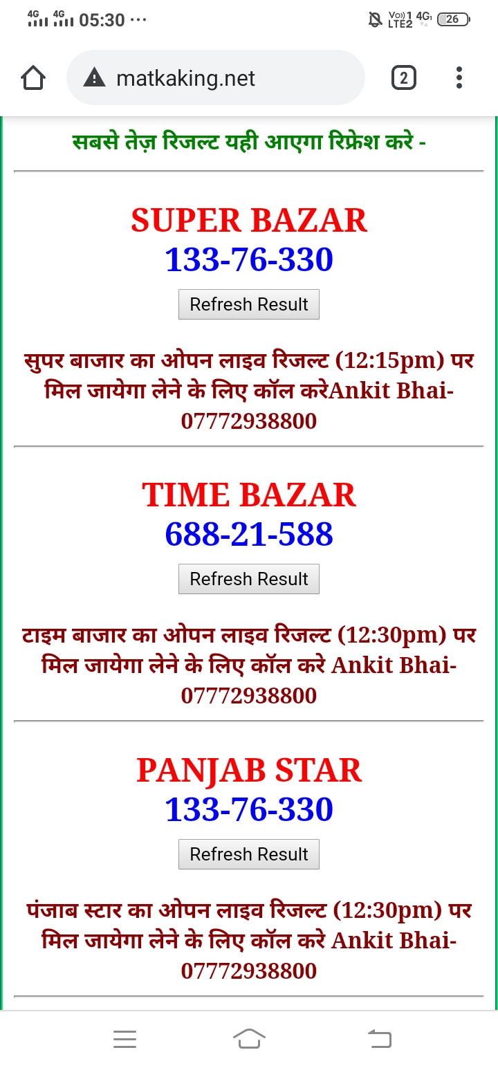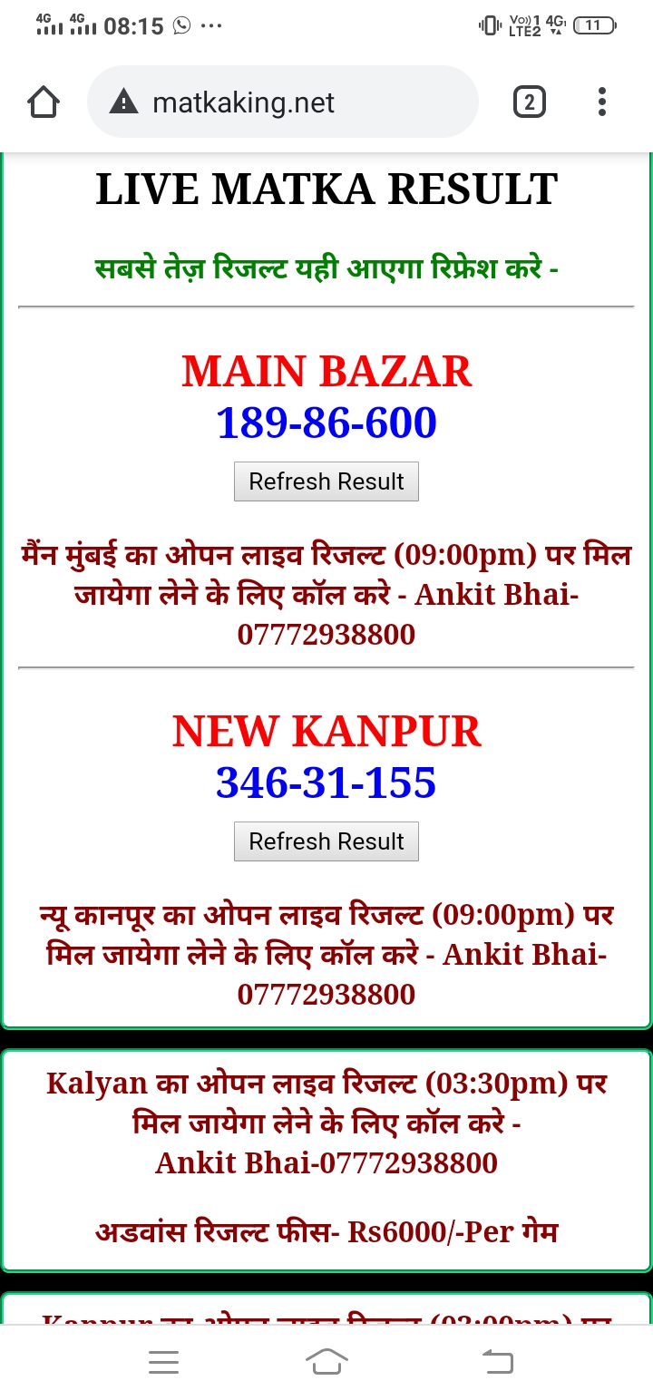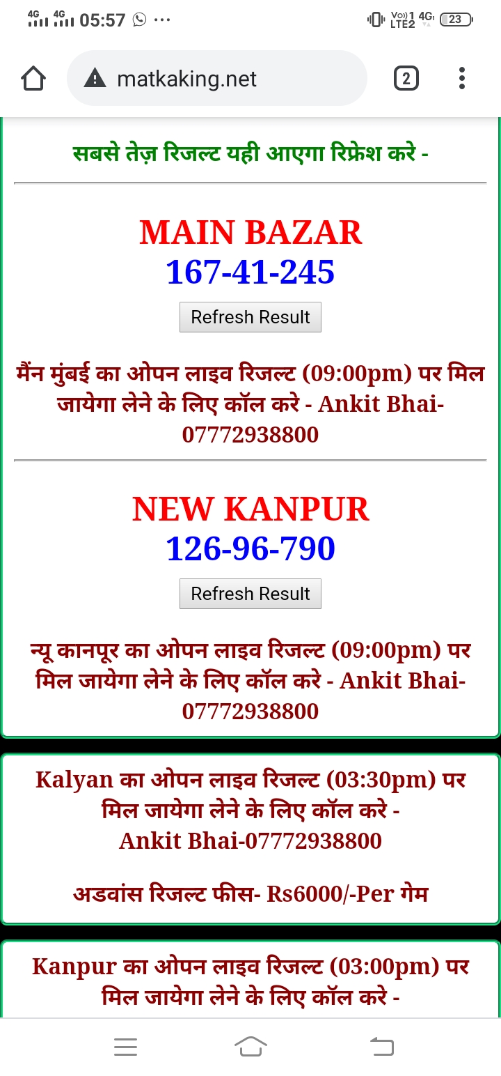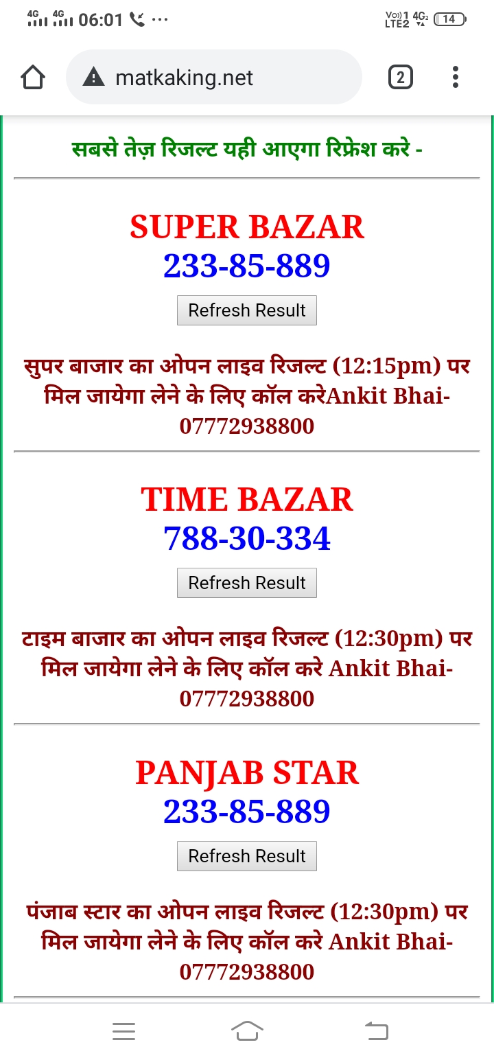 दोस्तों अगर आपको कल्याण, टाइम बाजार, मधुर डे ,मिलन डे, राजधानी डे, महालक्ष्मी डे, गोरखपुर डे ,जयपुर डे , कानपुर डे , गुजरात डे , राजकोट डे, मेन बाजार कल्याण नाइट काशीपुर डे , ओपन लाइव रिजल्ट 30 मिनट पहले लेने के लिए कॉल करे -अंकित भाई -7772938800