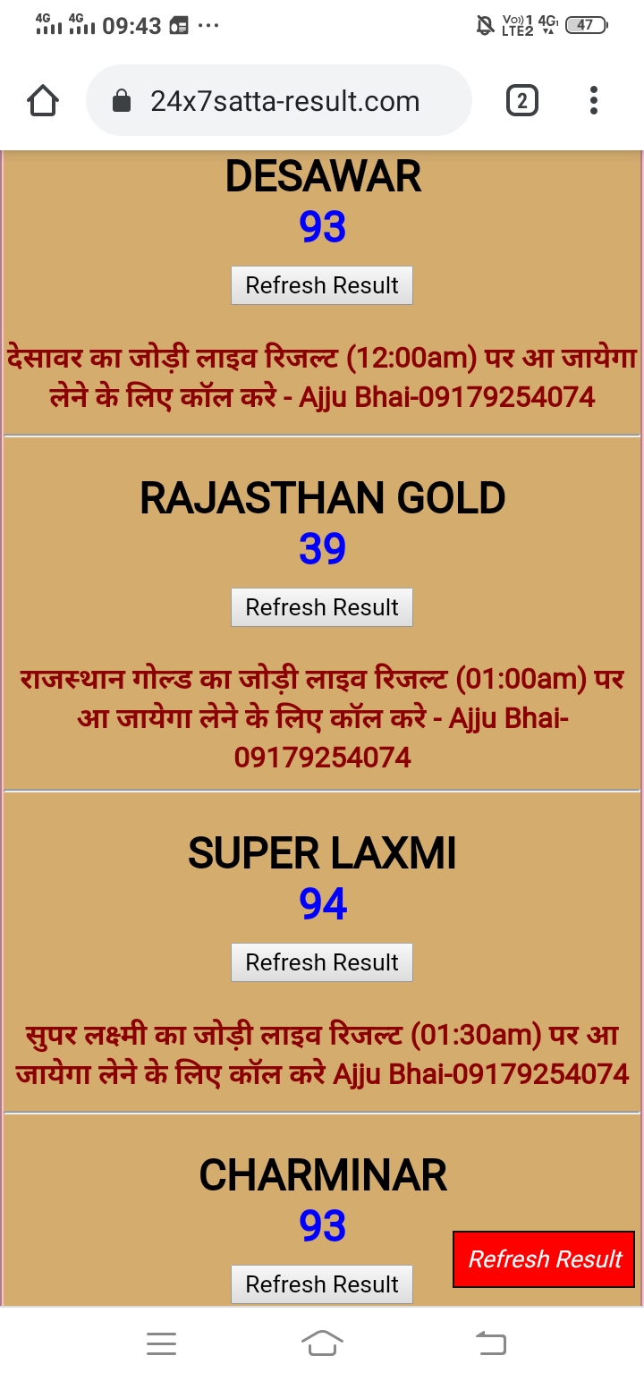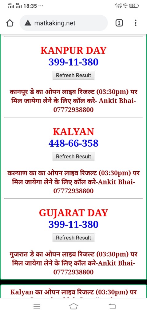कल्याण , मिलान डे , मधुर डे , कानपूर डे , जयपुर डे , टाइम बाजार ,मधुर मॉर्निंगार , महालक्मी डे कल्याण नाईट , मिलान नाईट , राजधानी डे , मधुर नाईट , जयपुर नाईट , कानपूर नाईट , राजधानी नाईट , महालक्मी नाईट ,मैन बाज़ार,ओपन लाइव रिजल्ट 30 मिनट पहले लेने के लिए कॉल करे (Ankit Bhai-07772938800)